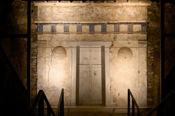 Our next stop will be at the Museum of the Royal Tombs, a UNESCO World Heritage Site. Plus, we'll visit standout funerary monuments, such as the royal tomb of Philip II, the father of Alexander the Great. Then, beneath the burial mound, we'll see gold treasures dating back to the 4th century BC.