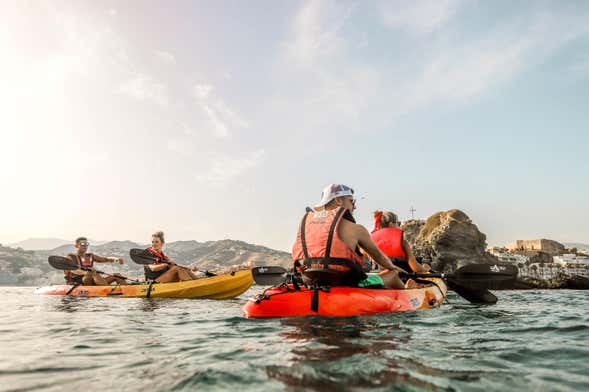 At the scheduled time we'll meet at the beach of Almuñecar, specifically at the Munay Beach restaurant. Once we get there, we'll put on our vests and start this kayaking tour along the coast of Almuñecar.