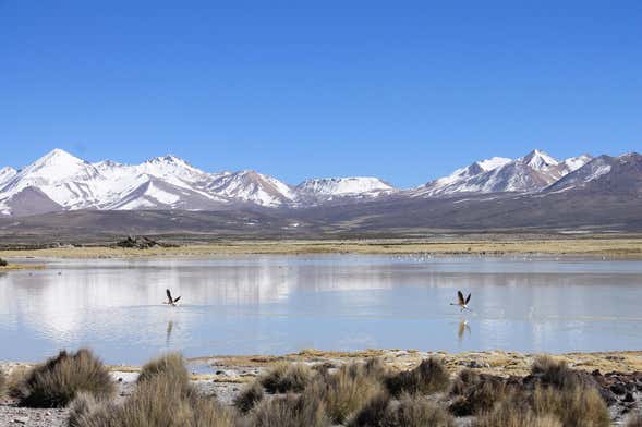 After breakfast in Socoroma, we'll go to the viewpoint of Putre to enjoy magnificent views of the town and take a short walk next to its caves. The next stop will be at the viewpoint of Chucuyo, where we'll be able to see the volcanoes and lagoons that extend across the vast Chilean altiplano.