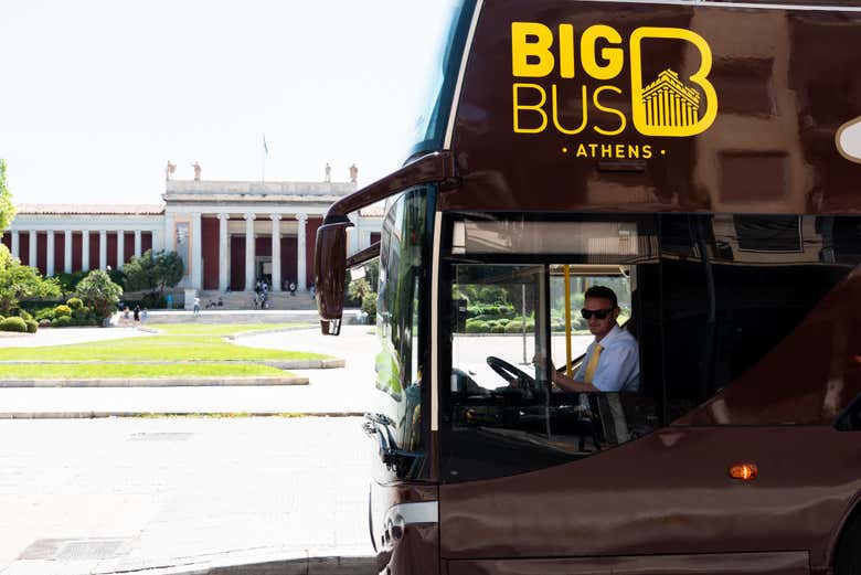 The Big Bus hop-on hop-off bus in Athens offers various routes to discover the Greek capital's main monuments comfortably and practically. The vehicle has two storeys, an open-top roof, and an audio guide in English that will reveal the most important facts of each place we drive by.