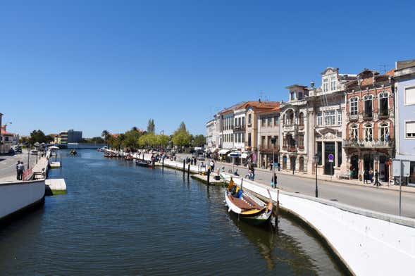 Strolling alongside Aveiro's idyllic canals, we'll see the traditional moliceiro boats. These small colourful gondolas were historically used for the transport of salt and seaweed. We'll pass old warehouses and striking Art Nouveau façades, and cross pretty footbridges such as the Carcavelos Bridge.