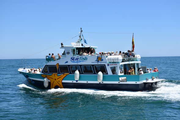During the one-hour boat ride, you'll enjoy breathtaking views of the Alboran Sea and the Sierra de Mijas mountain range on the horizon. What's more, while you enjoy the cruise, you can order drinks or snacks from the bar on board.