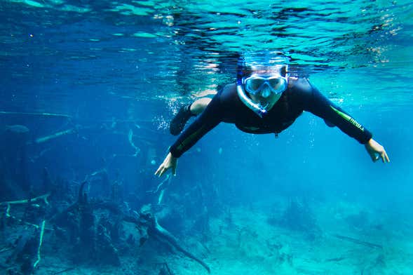 You'll be struck by the crystal clear waters of the river, a transparency that is very common in the river currents of Bonito due to the high concentration of limestone and the effect that this mineral produces with the reflection of the sun's rays. We'll explain all the details as we swim downstream admiring the aquatic flora and fauna.