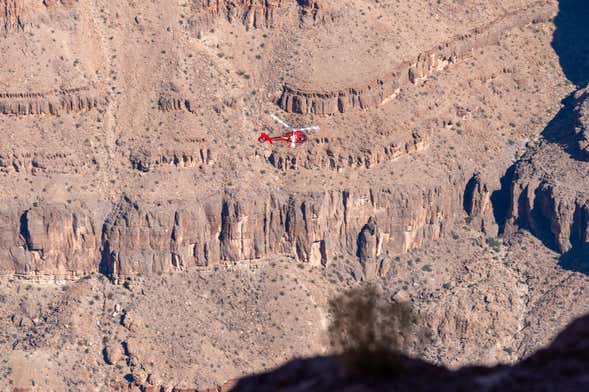 If you choose this option, you'll fly by helicopter from Boulder City to the Grand Canyon, and when we land, we'll take a 3-hour guided tour of the Grand Canyon West. During this bus tour, we'll visit all the attractions of this natural environment: Eagle Point, Guano Point and Hualapi Ranch. It will be a very complete visit!