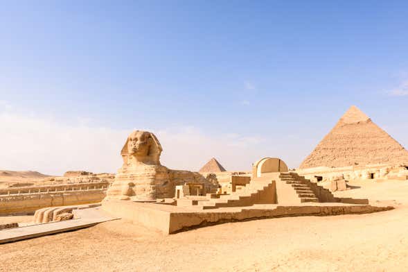 After breakfast at the hotel in Cairo, we'll go to the Giza Pyramids. Here, we'll admire the Cheops mausoleums, Chephren and Myceraeus, and enter the second to learn more about the history of this important pharaoh. Another stop will be the famous Giza Great Sphinx to appreciate its colossal size.