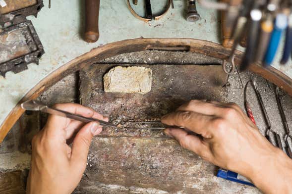Once we've all met up, we'll enter a goldsmith's workshop to meet Mattia. As we see how he does his craft, he'll explain the traditional techniques that he uses to create jewellery.