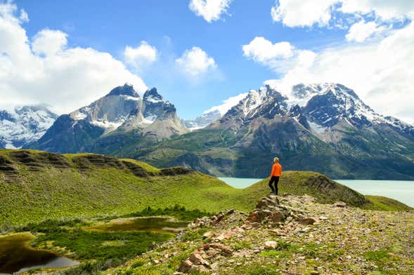 Following lunch, we'll head to the viewpoints of Nordenskjold Lake and Salto Grande. We'll then embark on a 1.5-hour trekking route to admire the impressive landscapes of turquoise waters and steep, snow-capped mountains that make up Torres del Paine.