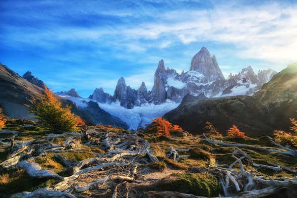 We'll meet at the indicated time at Avenida San Martín in El Chaltén. There we'll board a minibus and take you to the area of El Pilar, where you'll start a self-guided trekking route through Mount Fitz Roy.