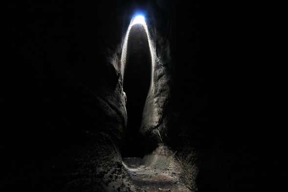 Afterwards, we'll enter Serracozzo Cave through its volcanic tunnel. Are you ready to see one of the most spectacular places in the Etna National Park? Originating in 1971, this elongated lava canyon has a sheet of light that enters through a small hole in the ceiling. You'll be mesmerised by the sparkles!