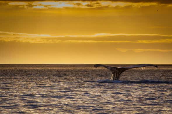 From the boat, we'll admire a magical sunset over the coast of Madeira. We'll also try to spot different whales and dolphins as the sun sets since they come to the coast of the island to feed on crustaceans and small fish during this time of day.