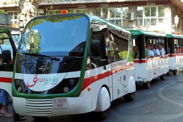 The Granada sightseeing train follows a route around the city centre. Throughout a journey lasting 90 minutes, the train makes a total of 12 stops at some of the city's most iconic monuments, such as the Alhambra, the Puerta de la Justicia and the Torre de las Cabezas.