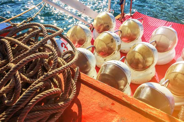 You've got nothing to fear! To do this underwater sea walk, you'll use the latest technology and a diving helmet with a transparent visor, ideal for those who have no diving experience and want a true panoramic experience of marine life. You can breathe as normal, as if you were on land. Plus, there's no need to carry an oxygen tank, so the equipment is very light and easy to use.