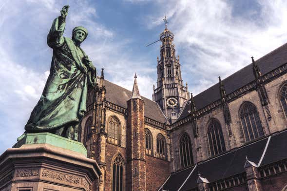 From the Grote Markt, in Haarlem's main square, you can admire the façade of St. Bavo's Cathedral, one of the jewels of Dutch Gothic architecture. Next to the church is a sculpture in honour of Laurens Janszoon Coster, one of the fathers of printing.