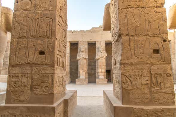 After a four-hour drive, we'll arrive in Luxor, where the Temple of Karnak awaits us. This colossal masterpiece, which took over 2000 years to build, is dedicated to the Sun God, Amun-Ra. Did you know that it was the largest temple in Ancient Egypt? We'll get to admire the hieroglyphs on its columns, walk through its hypostyle hall and learn all about the beliefs of the ancient Egyptian civilisation.
