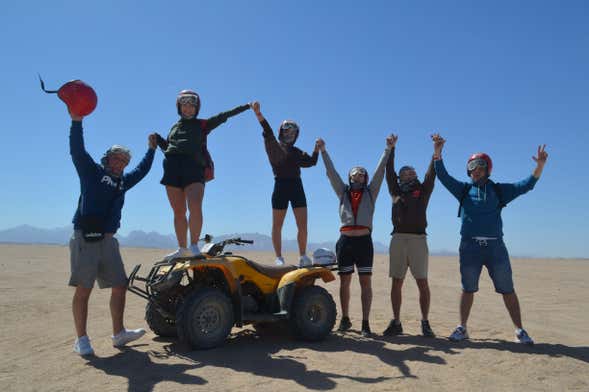 Once we arrive at the desert camp, you'll ride a quad bike for 45 minutes through the arid landscapes of this part of Egypt. You'll also drive a buggy for 20 minutes.