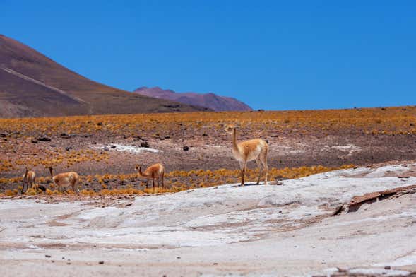 At 6:30 am, we'll pick you up from your hotel in Iquique and set off northbound for the Isluga Volcano National Park. Let's go!