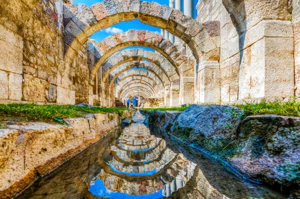 Next, we'll marvel at the beautiful facade of the Hisar Mosque and give you around 30 minutes of free time to enjoy a delightful lunch. Once refueled, we'll delve into the final part of the tour, exploring one of Izmir's most exceptional treasures—the famous Agora. Prepare to discover the intriguing connection between this ancient site and Alexander the Great as we wander through the remnants of this Greek city, uncovering its captivating history.
