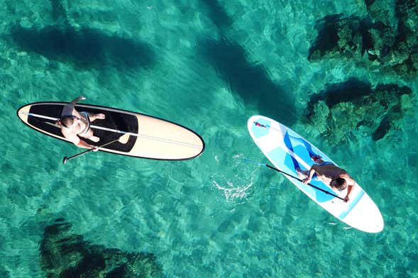 We'll meet up at the scheduled time on Jávea Beach, at the top of Avenida del Mediterráneo, 5. There, we'll give you the board, the paddle, and the life jacket and we'll briefly explain what the route will consist of. Then it's time to hit the water!