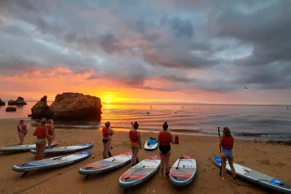 We'll meet at 6:30 am at Dona Ana beach in Lagos, a perfect place to practice one of the most popular water sports: paddleboarding.