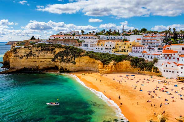 Our last stop will be in the municipality of Albufeira, historically known as the site where Amazigh troops first landed on their arrival to the Portuguese coast in the year 700. We'll visit the Praia da Marinha, one of the most beautiful in Portugal, and you can enjoy the views of its limestone cliffs and natural arches.