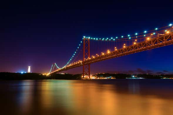 During our trip, we'll travel along the Tagus River from the Belem Tower to the Alfama neighbourhood. Keep your eyes peeled for Lisbon's main attractions, such as the Monument of the Discoveries, the 25 de Abril Bridge and the Sanctuary of Christ the King.