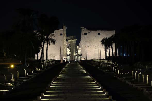The sound and light show at the Temple of Karnak lasts two hours. During this time, we'll embark on a guided tour to appreciate this remarkable architectural masterpiece from a unique perspective, concluding our journey at the Great Sacred Lake. Here, we'll take a seat and marvel at the temple as it comes to life with radiant illumination.
