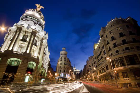 We'll continue the tour of Madrid with the Basilica of San Francisco el Grande, the Royal Palace, and the Almudena Cathedral. Then, we'll go up the iconic Gran Via, passing by the Cibeles Fountain and the Puerta de Alcala.