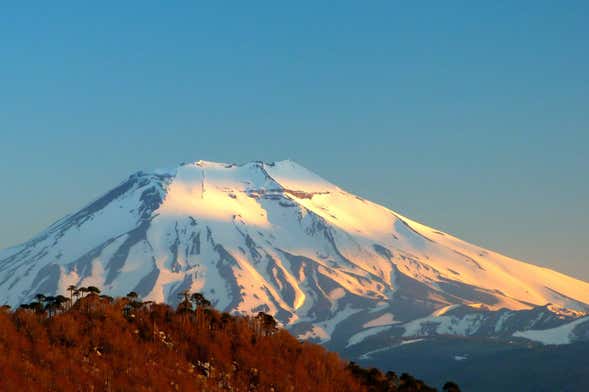 The effort will be well worth it because, at an altitude of 2,865 meters (9,400 feet), the summit of the Lonquimay volcano awaits us. Did you know that the name of this mountain is of Mapuche origin? While we learn this and other curiosities about this peak, we'll admire other Andean volcanoes such as Llaima, Villarrica, Lanín, Quetrupillán, and the Sierra Nevada.