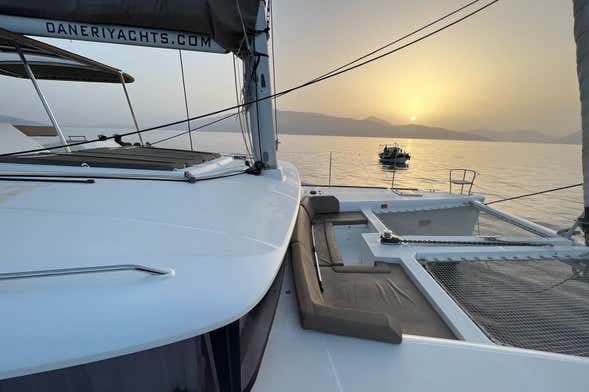 Enjoy a magical cruise through the waters of Crete on this sunset boat trip around Agios Georgios - swim in the open sea and have a delicious lunch on board!