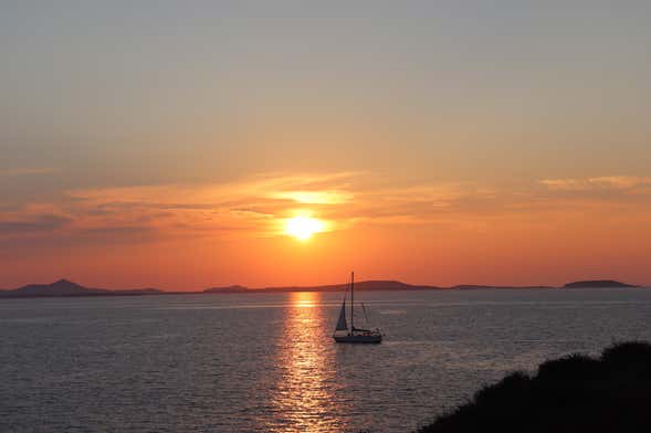 Afterwards, we'll enjoy a delicious dinner on board. The menu, which is prepared by the cultural association Casa Consolat, includes a varied selection of savory pies, vegetable salads, and seasonal vegetables and, for dessert, sweet cakes and fruits. What's more, you'll enjoy two glasses of rosé wine per person.