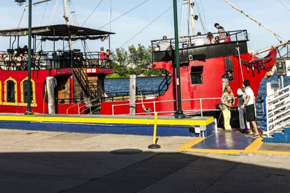 We'll set sail from the port of Miami aboard El Loro, the only pirate ship in the city that has 2 floors, a cafeteria, and bathrooms. From its wooden deck, you'll enjoy views of the bay and the islands that house the most spectacular mansions in Miami.