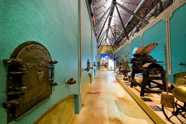 On our guided tour of this 1964 building, we'll notice that it still preserves its original characteristics: the traditional roofing system and the original wine barrels. We'll admire different pieces, audiovisual footage and digital screens that turn this traditional space into an interactive one. One of the most popular exhibitions is the ageing room, which holds over two thousand French and American oak barrels.