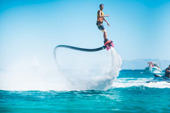 Explore the coast of Mykonos from the air with this fantastic flyboarding activity. Feel a thrilling rush of adrenaline and enjoy unique views of the beautiful Greek Island.