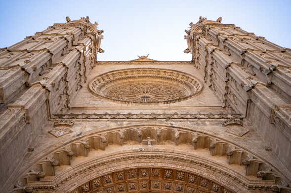 From here, we'll stroll through scenic pine and palm trees as we uncover the monumental side of Palma. Along the way, we’ll admire the Palma de Mallorca Cathedral, an impressive golden sandstone building. Standing as one of the tallest Gothic structures in Europe, it proudly symbolizes the Balearic capital.