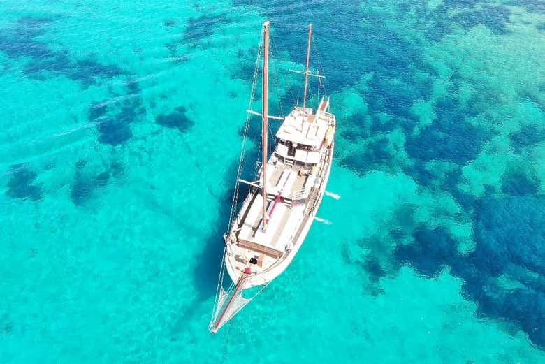 At these stops, you can also practice snorkeling to enjoy the diversity of the seabed at your own pace. Plus, on our boat, we'll reach the island of Antiparos, known for being home to the only natural stalactite and stalagmite cave in the Cyclades.