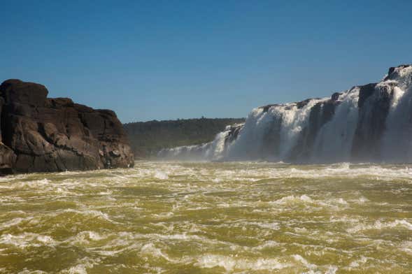Over the fault, which is located in the Uruguay riverbed, a spectacular set of 82-foot (25-metre) high waterfalls cascades down to a depth of 377 feet (115 metres). We'll take in the sight of all these waterfalls on a boat trip through the Moconá Falls.