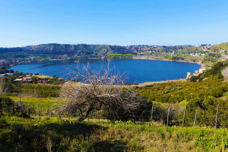 After about 20 minutes on foot, we'll arrive at the lake, a volcanic body of water that has been involved in two major eruptions, the first about 8000 years ago and the second about 4000 years ago. Walking along the path that borders it, we'll talk about the first Roman colonies that settled around the lake in the first centuries BC.