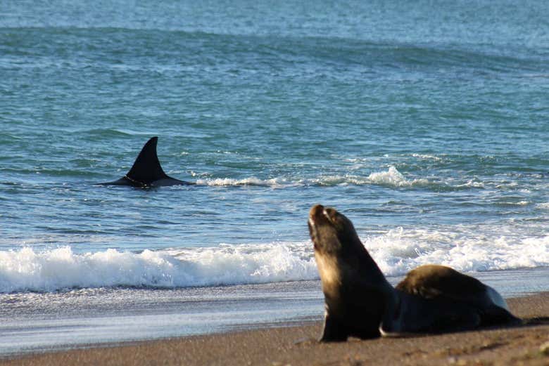 We'll then reach our main destination: Punta Norte. There, we'll go to one of the best viewpoints on the beach, where we'll wait patiently and excitedly for the first sightings of these mammals. We'll be in an area renowned for being one of the places in the world where orcas have developed the amazing strategy of intentional stranding in a safe way.