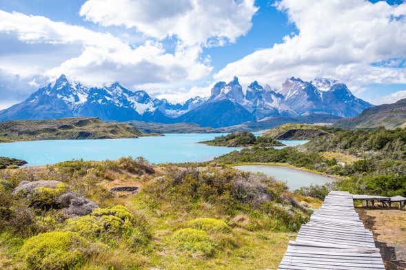 Next, we'll set off to Torres del Paine, a world-famous national park full of breathtaking mountains, rocky towers, impressive views, and ancient glaciers. Here, we'll board a boat for a pleasant ride on Lake Grey. During this relaxing trip, we'll get spectacular views of the Paine Massif, which will leave you speechless. Not only that, but we'll also witness the huge chunks of glacial ice broken off from the Grey Glacier that are spread throughout the lake.