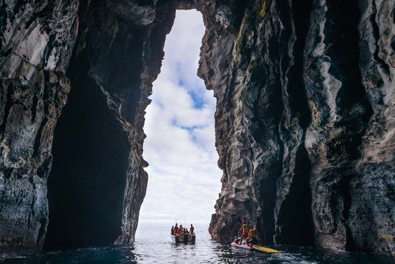 We'll continue our journey towards the lighthouse of Ribeirinha. On this part of the trip, we'll sail among impressive caves sculpted by volcanic eruptions and visit the old port of Santa Iria. We'll also pass in front of Praia dos Moinhos beach, where you can swim and enjoy the calm and relaxing atmosphere.