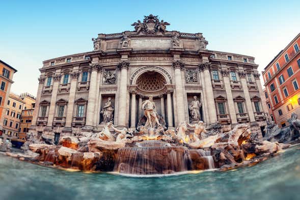 In addition, we'll visit the remains of Domus Imperial, where we'll travel back in time and learn about the Eternal City. Of course, before ending the tour, don't forget to abide by the tradition of throwing a coin in the Trevi Fountain. But before doing this, we'll tell you about the origin of this custom.