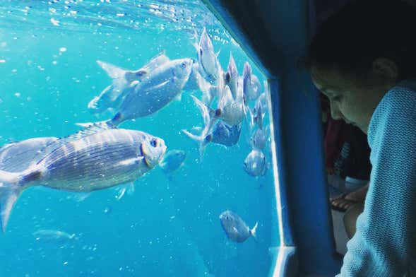 Here, we'll enjoy not only panoramic views of Lledó Cove and Murta Cove but also the marine wildlife inhabiting the area through the glass portholes on the lower deck—a delight, especially for the little ones.