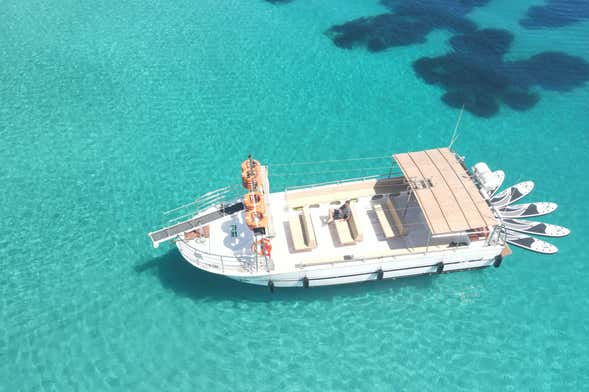 Once we arrive at the coves, we'll dock the boat so you can relax on the beautiful beaches with turquoise waters. If you like water sports, you will also have paddle surfing and snorkelling equipment at your disposal. There will be no time to get bored!