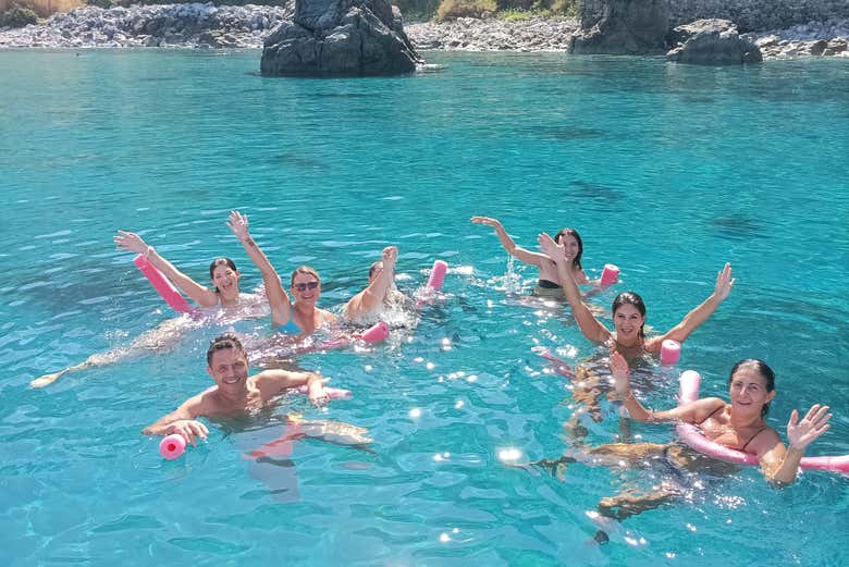 We'll meet at the indicated time at the Marina of Porticciolo di Bagnara Calabra, just 10 km (6.2 mi) from Scilla. There, we'll board a boat with music on board and karaoke, perfect to liven up our trip along the Costa Viola, one of the wildest and least explored areas of Calabria. Let's set sail!