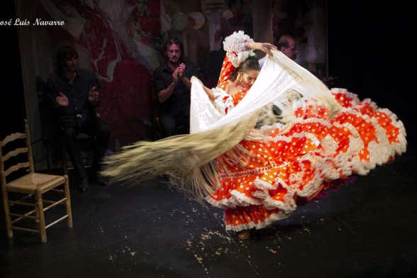 Through a courtyard decorated with typical Sevillian tiles, you'll enter the Teatro Triana, a place dedicated to singing, dancing and guitar playing. At the scheduled time, the first guitar chords will start to play and the flamenco show will begin!