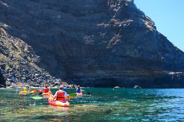 Then it's time for the fun part! After getting into the boats, we'll start our kayak tour, paddling south along the coast of La Palma. Leaving Porís de Candelaria behind, we'll make our way to Cueva Bonita, an iconic sea cave located at the foot of a steep cliff. We'll check out this popular volcanic cavern from our kayaks, slowly paddling our way inside.