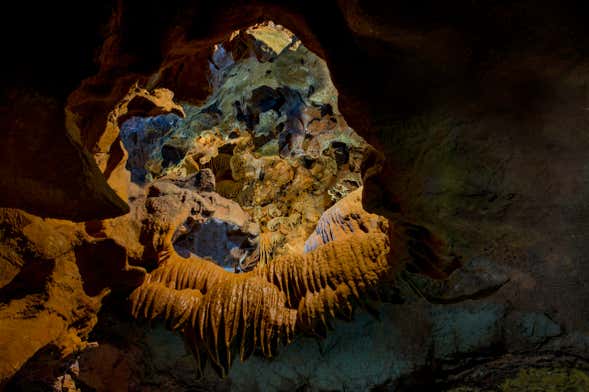There's also a small area where we'll walk inside the cave. In total, we'll travel 850 meters (about half a mile) by boat and 200 metres (650 ft) walking through the dry gallery. Continue your adventure on foot, learning all about the origins of the caves and their evolution over the course of history.