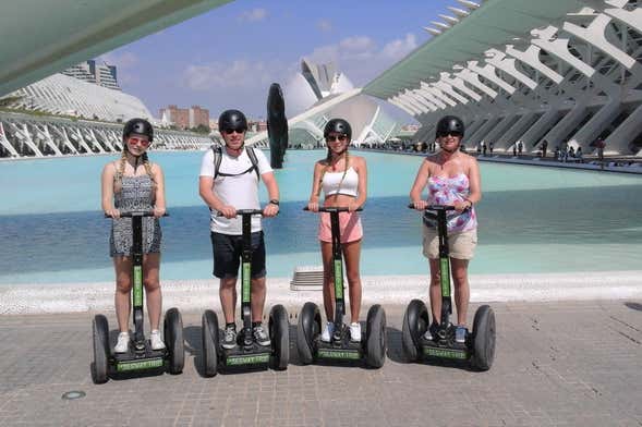 The tour will begin at Calle Náquera, 6. From there we'll go into the Turia gardens towards the buildings designed by Santiago Calatrava. During our segway tour of Valencia's City of Arts and Sciences, we'll explore the architectural complex formed by the Ópera (Palau de les Arts Reina Sofia), the Hemisfèric IMAX Cinema, the Príncipe Felipe Science Museum and the Àgora. After riding around the Oceanogràfic and the L'Umbracle gardens we'll go up to the former Turia riverbed to return to the Serranos Torres.