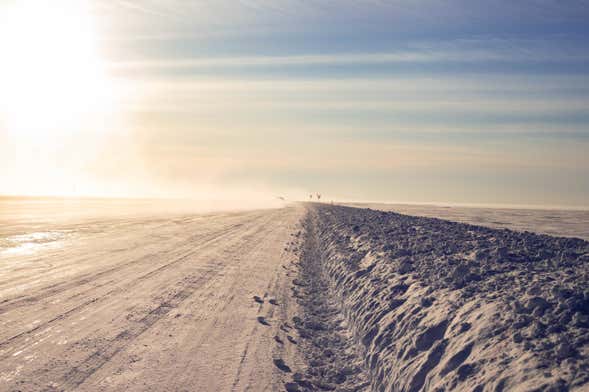 Our trip continues at the fabulous snow castle: a fortress built on the Ice Road itself. The monument, which, for obvious reasons, only remains standing during the winter, is built in a different style every year. You will be able to take a picture of yourself next to its perfectly crafted walls and battlements, as a souvenir of your fantastic adventure.