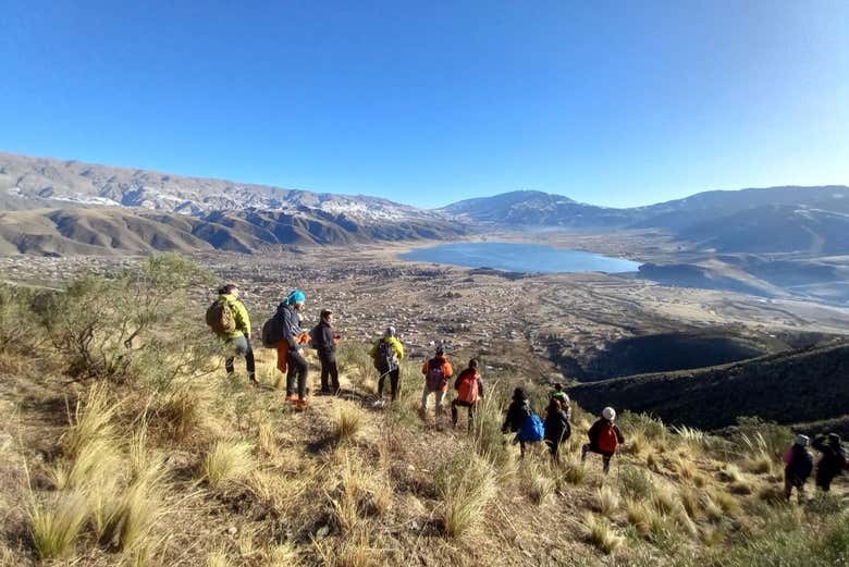 We'll hike along the Los Postes trail, where we'll descend circling the hill, and walk along gentle trails that pass through viewpoints that offer stunning scenic views of the Angostura Dam and El Mollar. As we ascend, you'll feel the altitude start to take effect and the slopes will get steeper. You'll be climbing 9842 feet (3000 meters) above sea level!